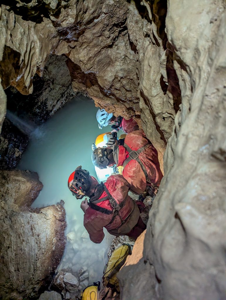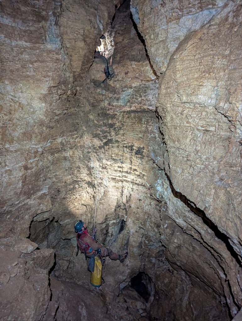 La descente vers -120 au lac du Tamponnoir est juste la « marche d’approche ». On ne descend pas si vite que ça, Arnaud équipe, c’est super!