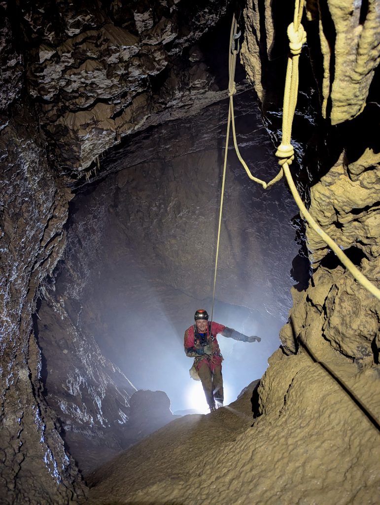 Je poursuis le méandre et trouve la corde. Mais non, on est au bon endroit!