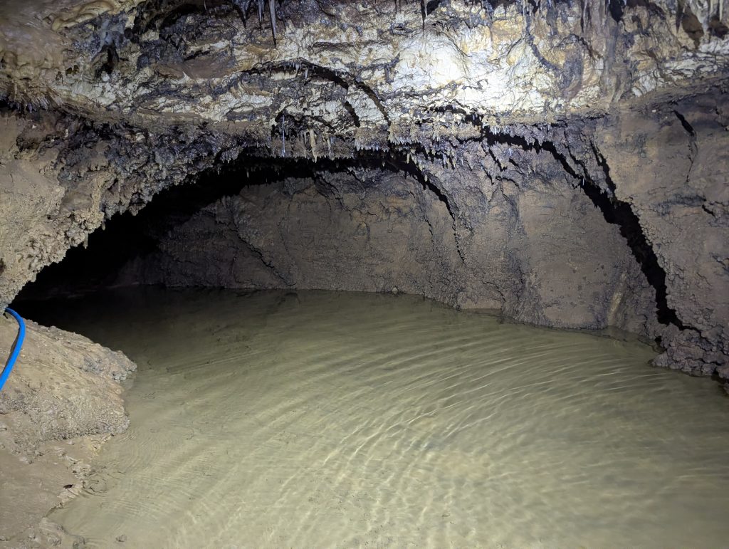 Nous arrivons au carrefour de la galerie « Aval Christenaux ». On s’arrête pour manger. On laisse les sacs et on part visiter « la Galerie des Mocassins » et « la Galerie des Mocasdeux » jusqu’au siphon de lHard Heure.