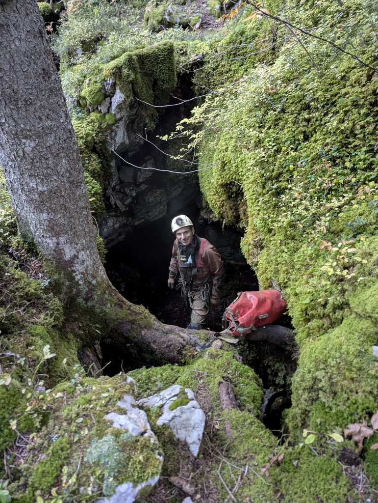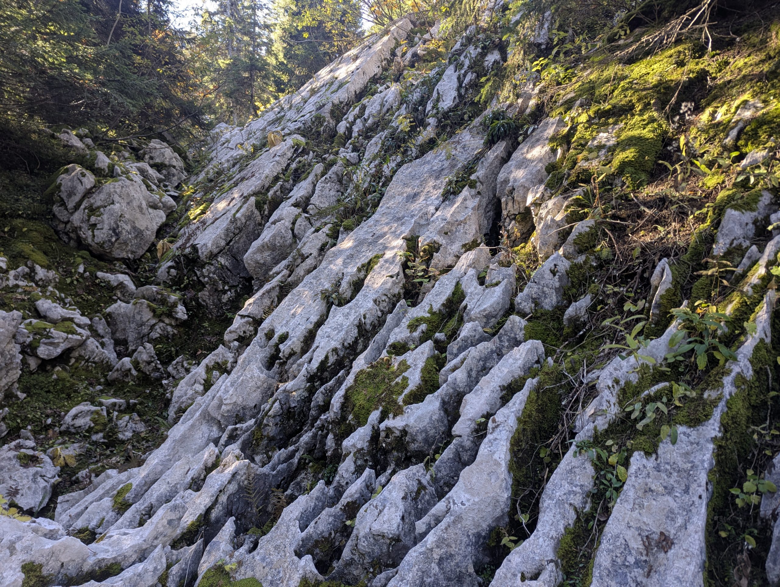 Il nous faut 1h15 pour monter à l’entrée du trou dans la combe des Eparres depuis le parking du Château à Saint Pierre d’Entremont. C’est raide !
