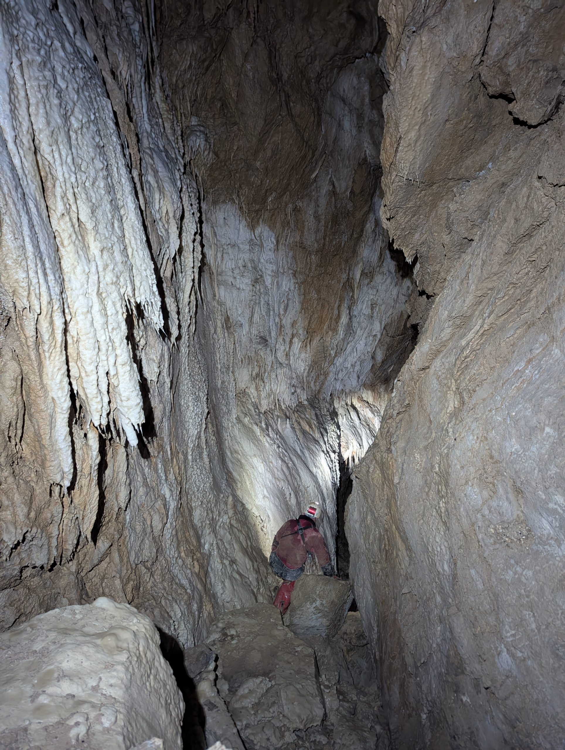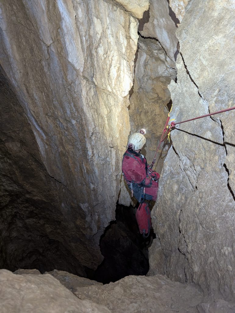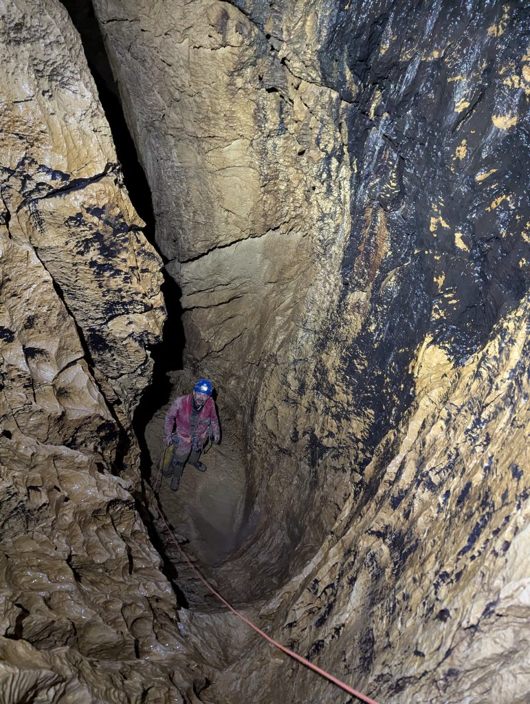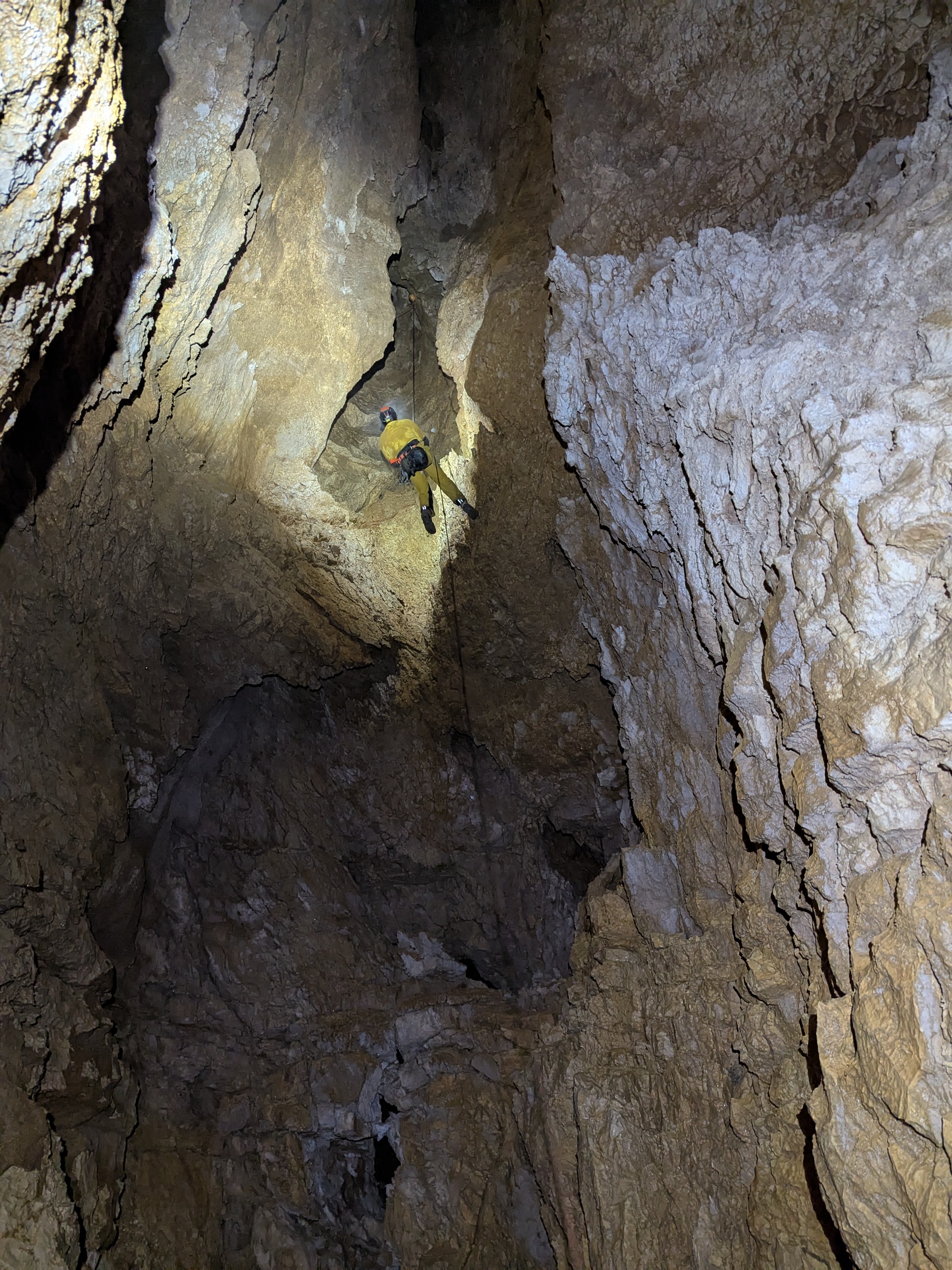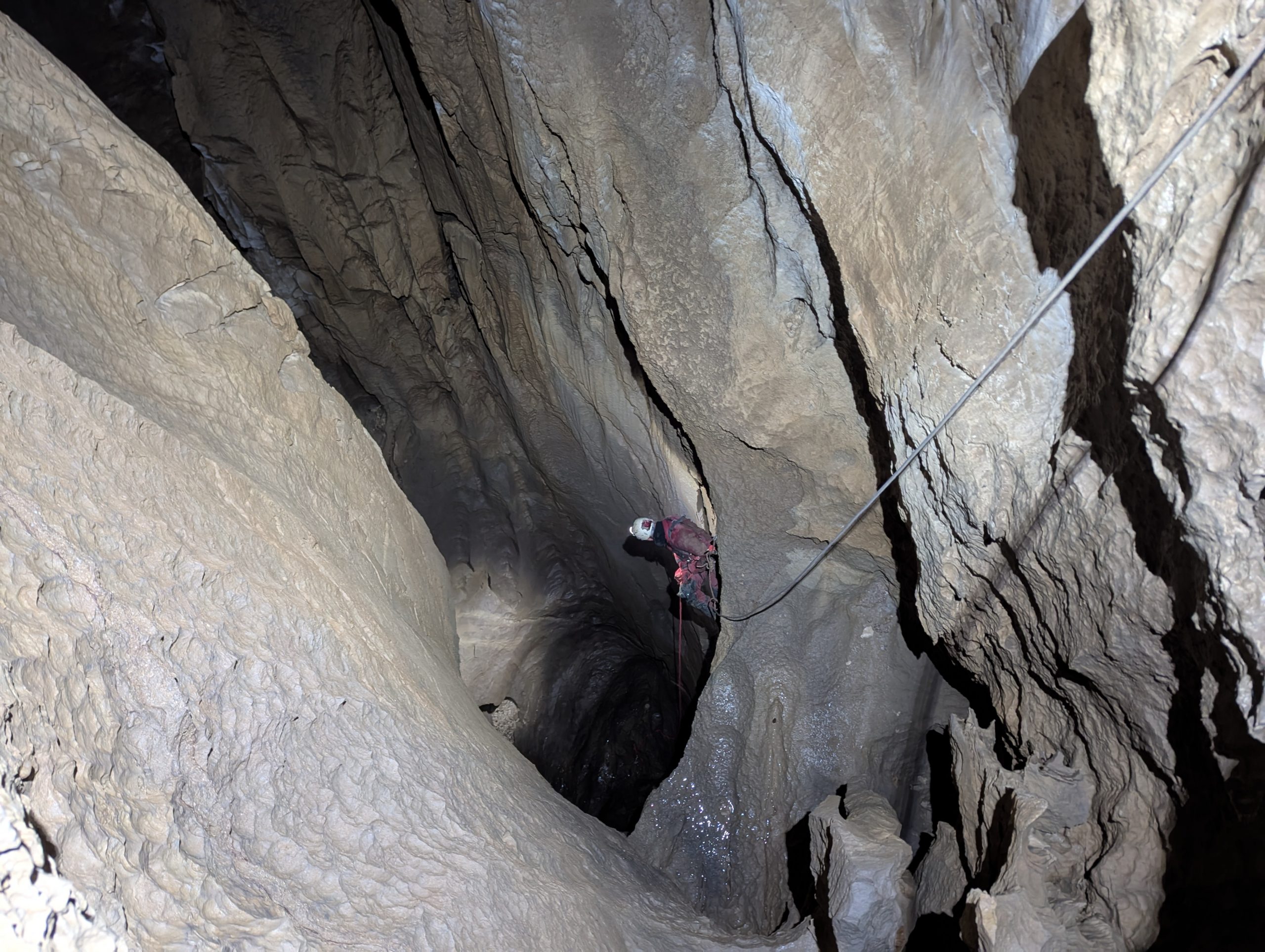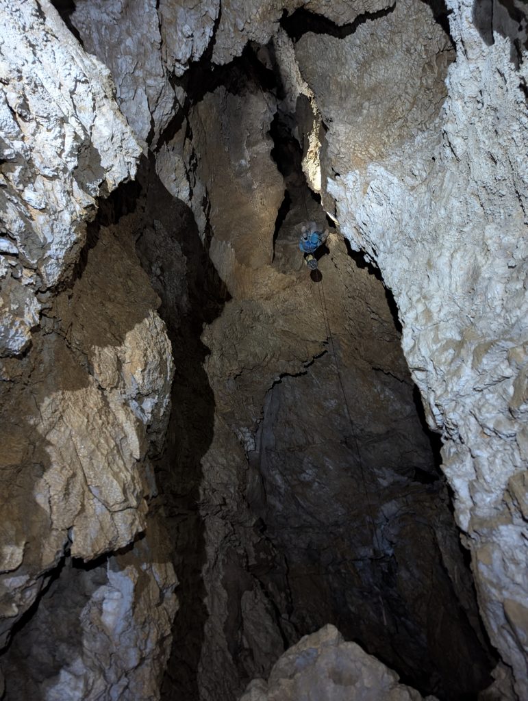 Le début jusqu’à la jonction à -150 est parfois un peu étroit sur les têtes de puits, il faut être fin à la remontée.